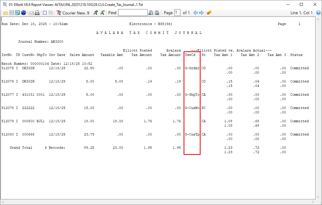 Posting Invoices to Accounts Receivable does not communicate with Avalara to commit the transaction. This is to avoid a crash in invoice posting if the application is unable to communicate with Avalara. Instead, the invoice posting application posts the tax transactions to the new Avalara Tax Queue file (AVTAXQUE). The Commit Tax Transactions application commits the transaction to Avalara in a separate step and can be scheduled through deferred processing after invoice posting has completed.
