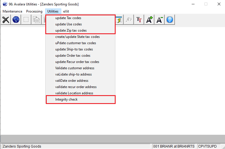 available from the System Utilities-> Avalara/Vertex Integration-> Utilities-> Integrity Check menu option.
