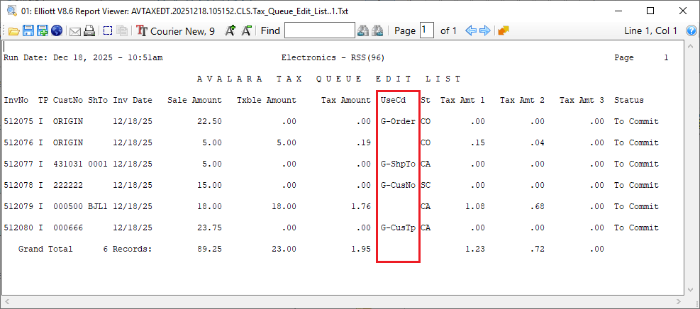 The Tax Commit Edit List shows a the list of transactions to be committed to Avalara using the AvaTax Service.