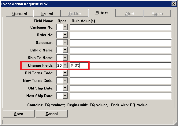 If you are only interested in being alerted when the ship date is changed, then you can specify the filter condition where "Change Fields" EQ "S ST." See sample screen above.