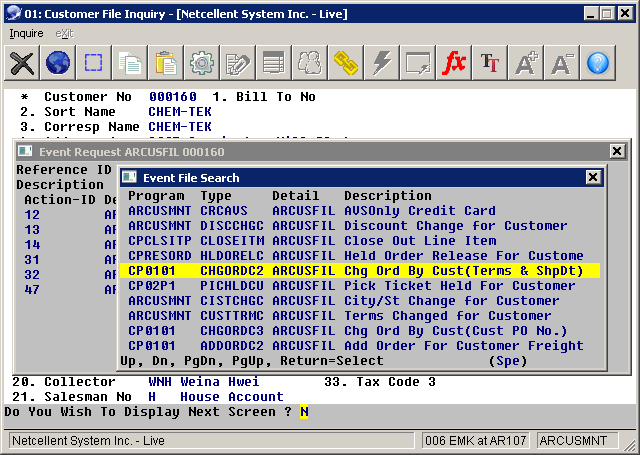 A - If we understand your intention correctly, you would like someone to get notification when the order header’s ship date field is changed. In our system, there’s an event for doing something just like that. You can subscribe to it by going to Customer File Inquiry and bringing up any customer, clicking on the event toolbar button, and choosing to "Add" an event. You will see the following event: