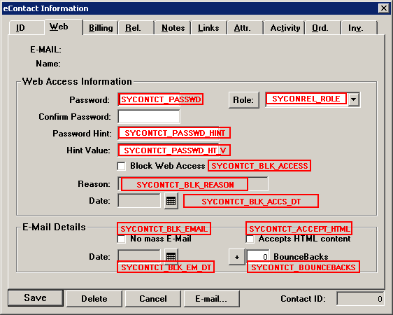 SYCONTCT_BLK_EMAIL | String | See “AddContactInput Structure” in AddContact method. |