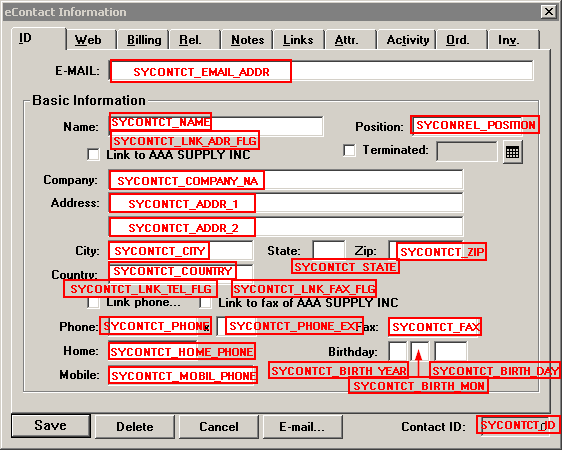 images show fields names in the eContact window: