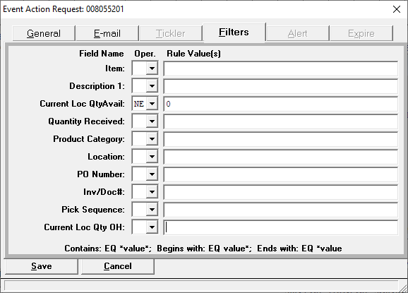 The ADDPORE2 event is derived from the ADDPOREC event. This event is triggered when a receiving transaction is added in either the Warehouse Receiving or the Legacy Receiving screen. The previously supported ADDPOREC event works the same way. The difference in the ADDPORE2 event is that it also displays the current receiving location’s quantity on hand and quantity available for the item. The idea is that if the item is out of stock, the warehouse can be notified by either email or message box to remind them to prioritize processing this particular receiving.