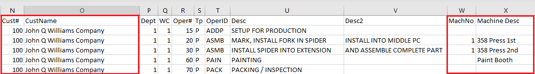The CSV output was also enhanced to include the customer number, customer name, machine number, and production reporting pre and post comments.
