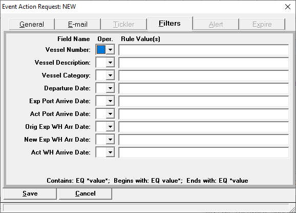 A new vessel change event, WHEARDTC, has been added. You can subscribe to this event from Inventory Management-> Maintenance-> Vessel File or Purchase Order & Receiving-> Maintenance->Vessel File. If subscribed, this event will be triggered if the expected warehouse arrival date or the expected warehouse arrival date are changed in change mode of Vessel File Maintenance.