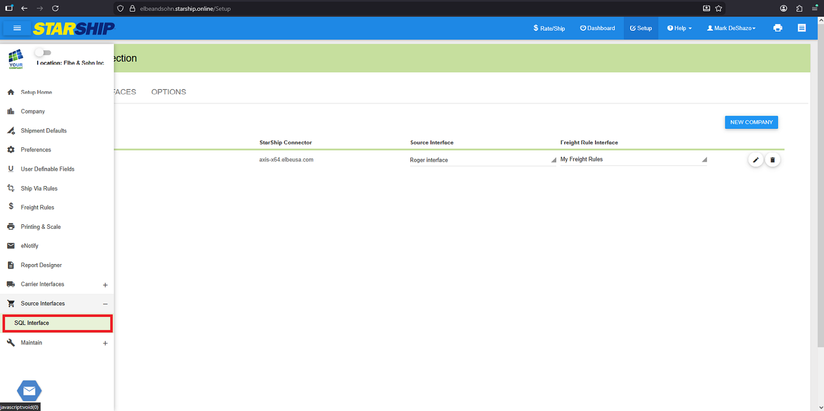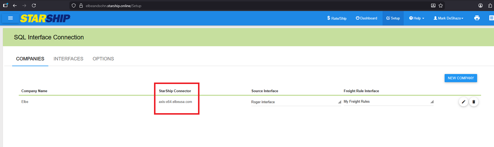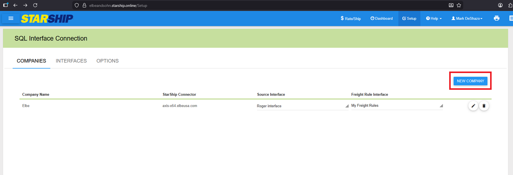The new database is name Elliott86Data02. Back in the Starship Cloud interface, you will need to select the New Company button since you can not change the database of an existing company.