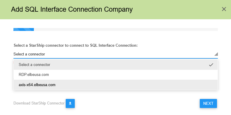 Next, you will choose a connector. Make sure you are using the connector for the computer with the new database. We are still using axis-x64.