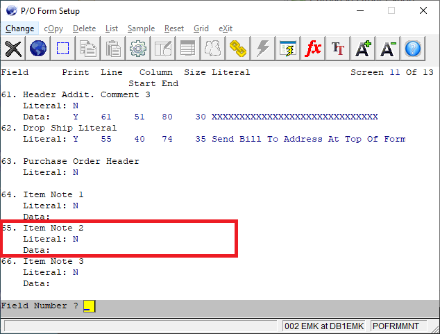 specific PO form you are using, then add the “Item Note 2” in screen 11.