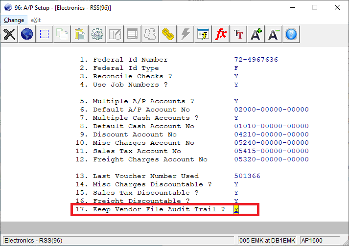 17. Keep Vendor File Audit Trail?