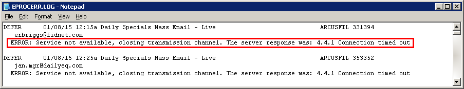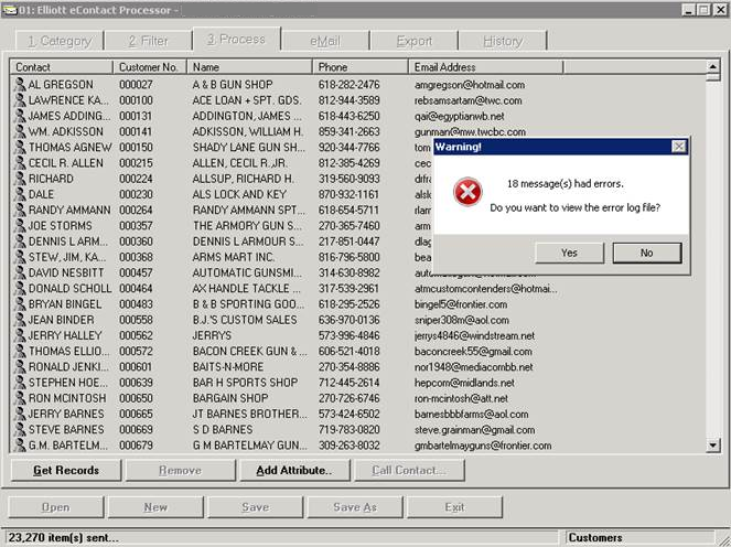 Q- I send out 23,000 emails every night through the Mass Email utility program. I always get a message like "18 message(s) had errors. Do you want to view the error log file?" at the end of processing. See attached sample below: