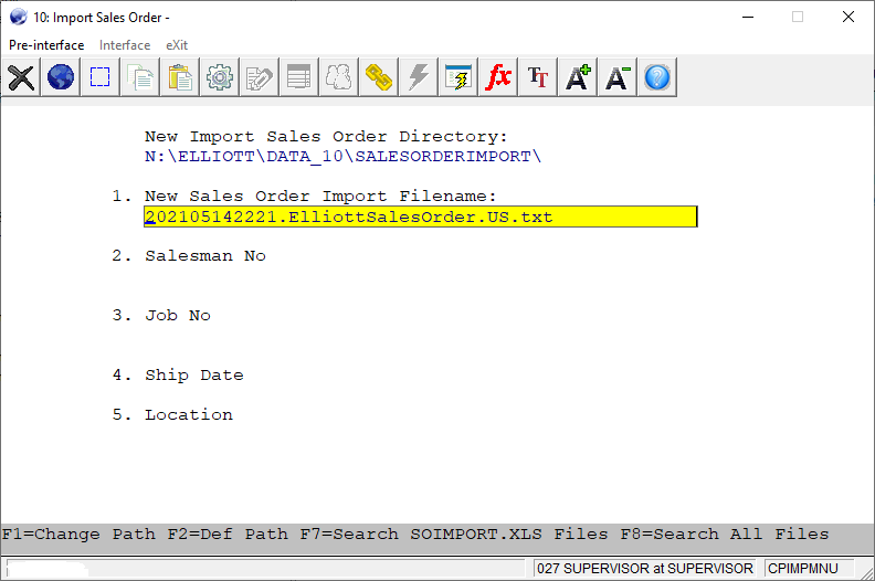 CPIMPMNU Customer Order Processing Sales Order Import
