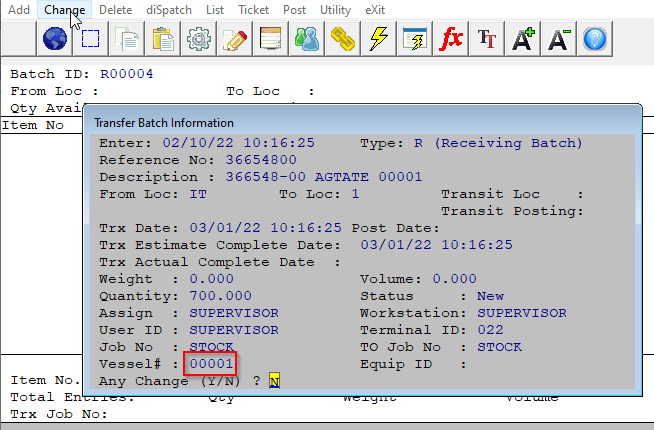 - They were posted together and the system only created one transfer batch. We can only store one vessel ID on the batch header because of the database.