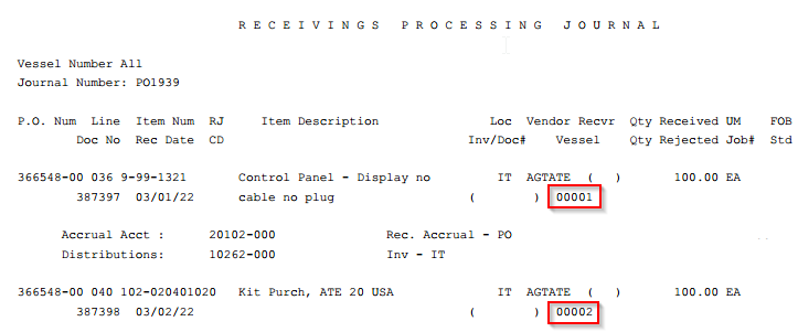 - In this case, for the same PO# 366548-00 you have two receiving items on two different dates and two different vessels.