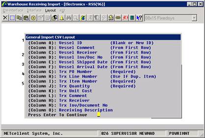POWRIMNT Purchase Order and Receiving Warehouse Receiving Import