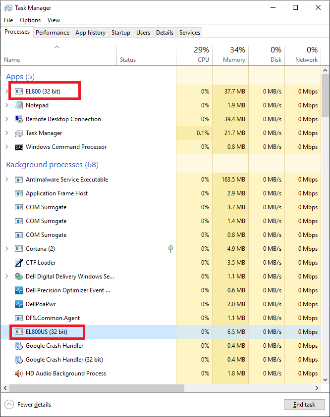 Once you clear them all from the Task Manager, try to run Elliott again.