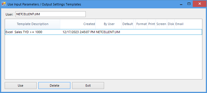 The next time when you run this report again, click on the "Use" tab to select the parameters/destination you want: