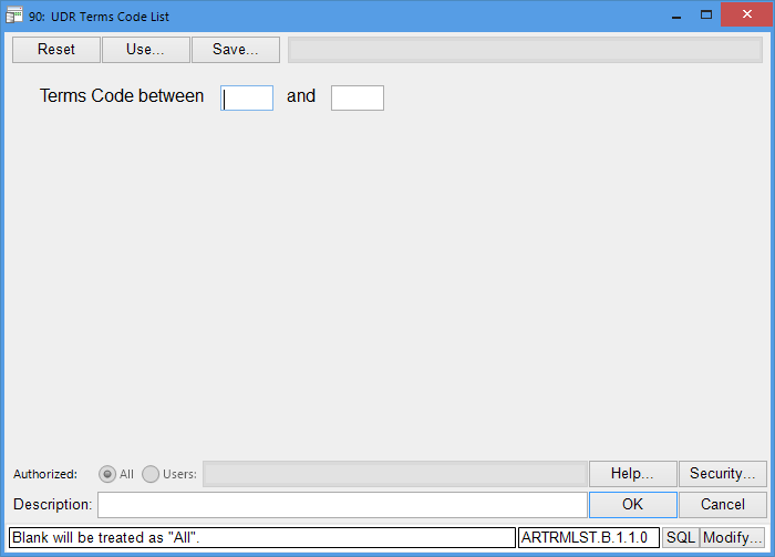 Go ahead and choose to run "ARTRMLST.B.1.1.0" in this example. The following window will show up. In this screen, you can choose the filter criteria. In this particular case, you can enter the starting and ending terms code. Typically, when you don't enter anything, it means "All." See sample screen below: