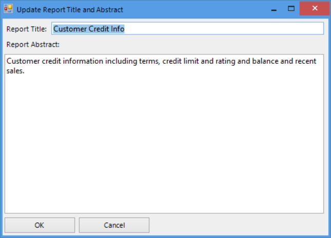 If the report developer included an abstract of the report, it will show up in the Abstract column. If it is truncated (having trailing ... ), hovering the mouse over the cell will show the entire abstract.