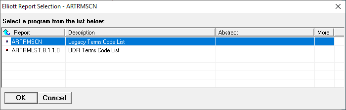 The "Legacy Terms Code List" is the traditional Elliott report that you are familiar with.