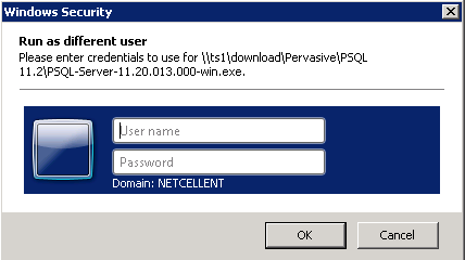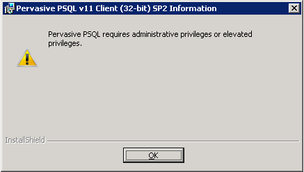 Pervasive PSQL requires administrative privileges or elevated privileges