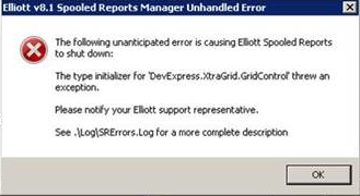 The following unanticipated error is causing Elliott Spooled Reports to shut down:
