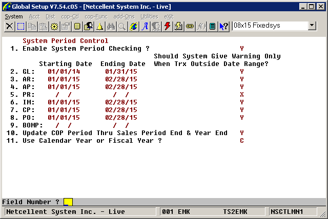 One of the primary purposes of “System Period Control” is to prevent the user from accidentally entering a “bad” date due to data entry errors. It is more accurate to say the “System Period Control” is designed to prevent “bad” dates, more than it is designed to control the accounting period.