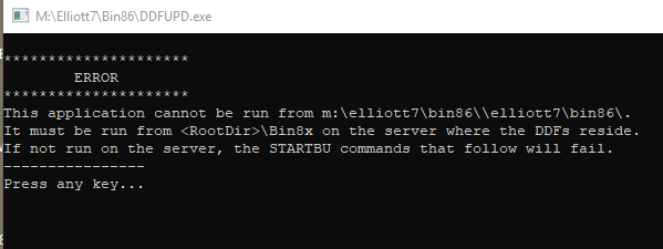 If the latest DDF files are installed manually, you can also run DDFUPD.exe manually on the server from the local or mapped drive path of <ElliottRoot>\Bin8x folder.