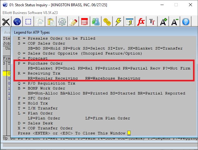 Any pending receiving transaction that has not yet been posted will have an ATP type of “RR” or