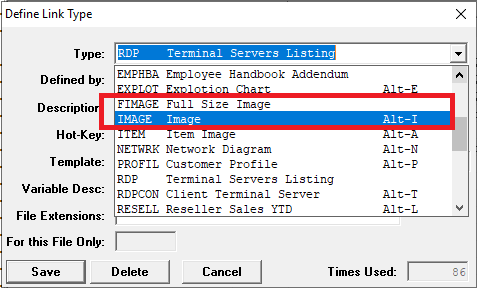 Q - What's the difference between IMAGE vs FIMAGE in the Link feature? See sample screen below: