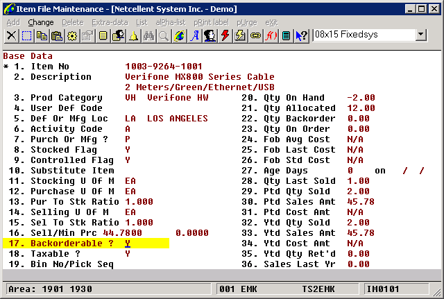 items that can't be backordered. In the Item Master, if the "17. Backorderable?" flag is set to "N," then it won't be possible to backorder that item. Generally speaking, you won't be able to backorder items that are being phased out or obsolete. Sometimes, a special one-time-deal item can't be backordered either. You do not want these types of items to be backordered because once the current inventory is sold, there will be no more to sell even if your customers are willing to be on backorder. By default, the Backorderable flag in the Item Master file is set to "Y." If the "Backorderable" flag is set to "N" in the Item Master file, then the line item will close automatically after an invoice is posted even if the line item is not shipped or partially shipped.