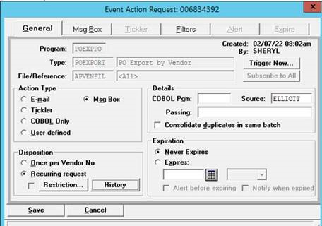 event is inside a printing/posting routine. Elliott does not allow triggering a message