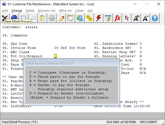 2004, we added a new field “38. Frt Col/Prepad” to the customer
